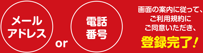 - 新しいスマートフォンにアプリをインストール後、アプリ会員登録時の「メールアドレス」「電話番号」「パスワード」でログインが可能です。