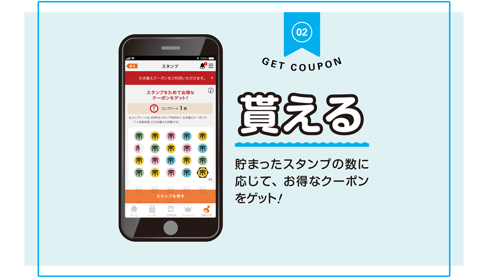 一部機種では、スタンプ端末によるスタンプ積み立て機能がご利用いただけません。ご了承ください。
